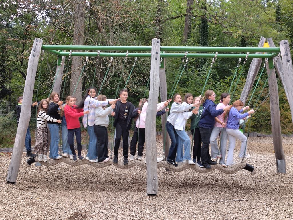 Das Essen fanden die meisten von uns gut, und es wartete mit den Betreuern von der Jugendherberge, David und Natalia, viel Programm, Teambuilding im Niedrigseil-Garten, Tracking im kleinen Wald der Jugendherberge mit GPS, eine Murmelbahn bauen.