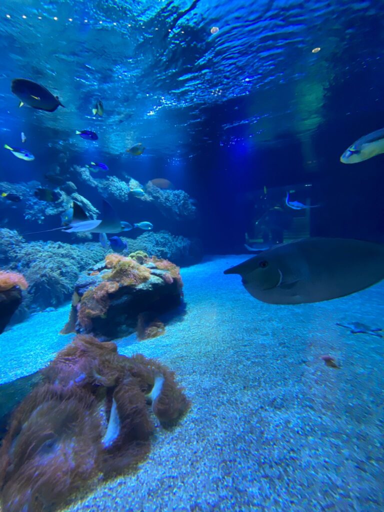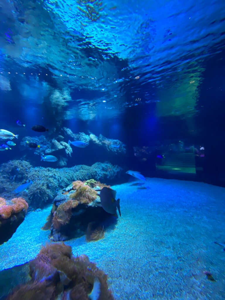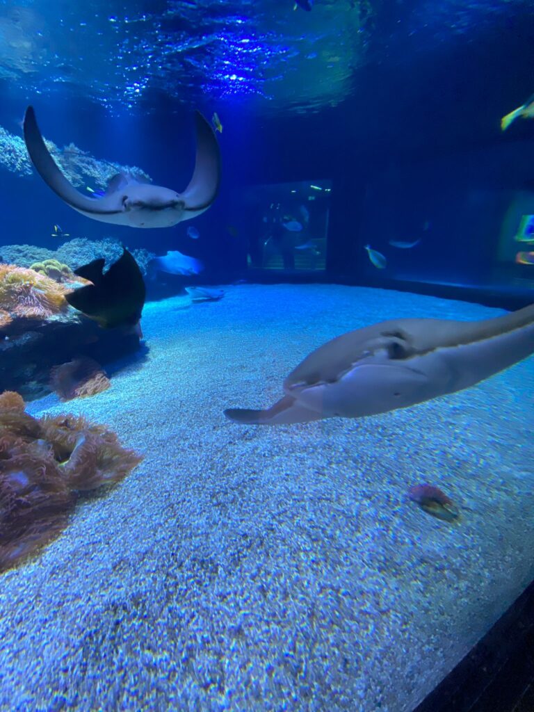 Nach diesem Teil durften wir uns in kleinen Gruppen im Museum umsehen. Dort gab es viele große beeindruckende Aquarien. Besonders auffällig waren die Rochen, die elegant durch das Wasser glitten. Außerdem sahen wir viele bunte Fischarten, unter anderem Kugelfische. Auch Oktopusse und Quallen waren zu sehen, die bei vielen für Staunen sorgten. Neben den Meerestieren gab es auch Tiere aus anderen Lebensräumen, wie zum Beispiel Alligatoren.