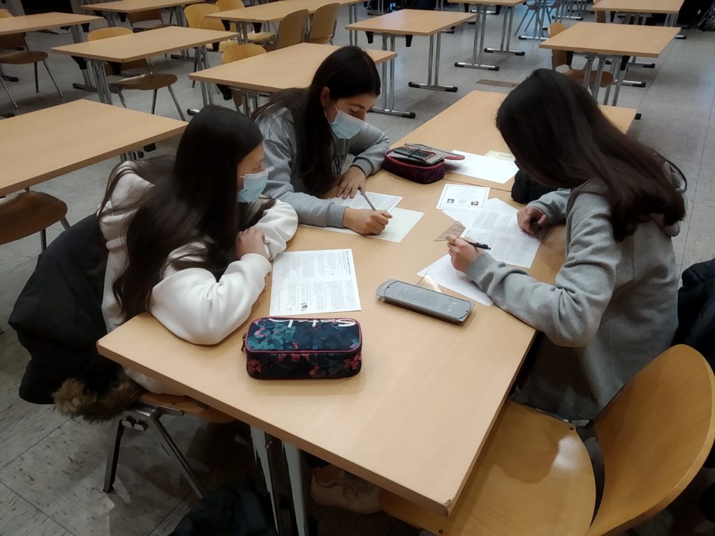 In diesem Jahr fand der Wettbewerb wieder in der Schule statt. Mit großem Abstand und in zwei Gruppen trafen sich die 13 angemeldeten Teams aus den Jahrgangsstufen 5, 6, 7, 9 und EF in der Aula. 13 Multiple-Choice-Aufgaben und eine weitere individuell zu lösende Aufgabe mussten bearbeitet werden. Besonders anspruchsvoll ist dabei, dass nicht genau eine Auswahlantwort richtig ist. Es können auch zwei, drei, vier oder alle fünf Antworten passend sein.