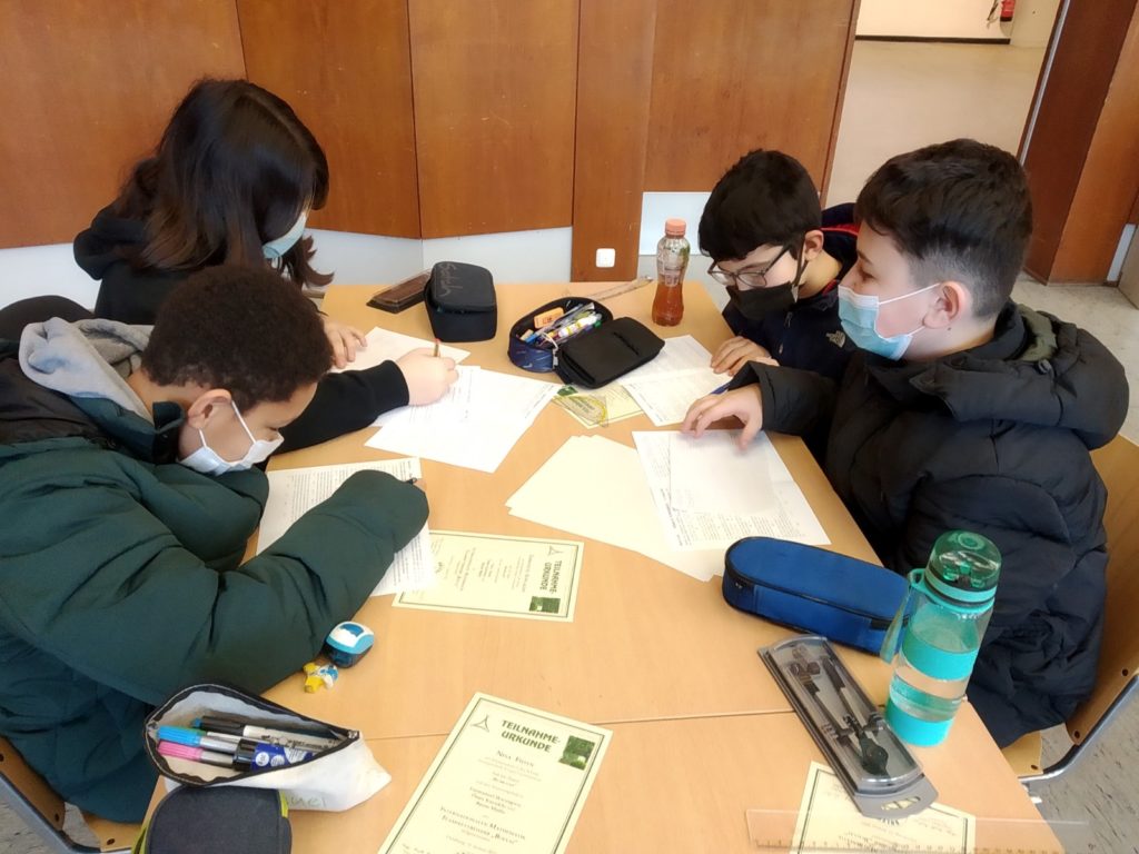 Die Teams gingen unterschiedlich an ihre Aufgaben heran. Manche arbeiteten in Zweierteams, damit sie gleichzeitig mehr Aufgaben schaffen konnten, andere berieten sich lieber zu viert, um mehr Sicherheit bei den Lösungen zu haben. Alle waren motiviert, ehrgeizig und hochkonzentriert, aber auch enttäuscht, wenn einfach keine Lösung zu finden war. „Man, war das schwer!“, stöhnte eine Teilnehmerin nach dem Wettbewerb und sprach damit sicherlich den meisten jungen Mathematikern aus der Seele. „Aber es hat auch Spaß gemacht!“, resümierte Suri aus der 5a.