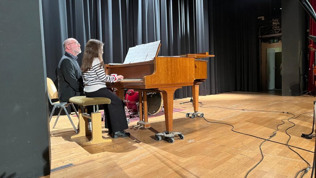 Das diesjährige Weihnachtskonzert war durch das Singen und Spielen weihnachtlicher Lieder geprägt. Der Unterstufenchor, alle möglichen Ensembles und Kombinationen sowie viele Solisten stellten ein buntes Programm auf die Beine, das durch Waffeln und Leckereien abgerundet wurde, die die Q2 im Vorraum darbot.
