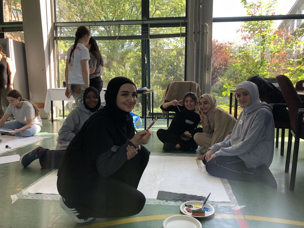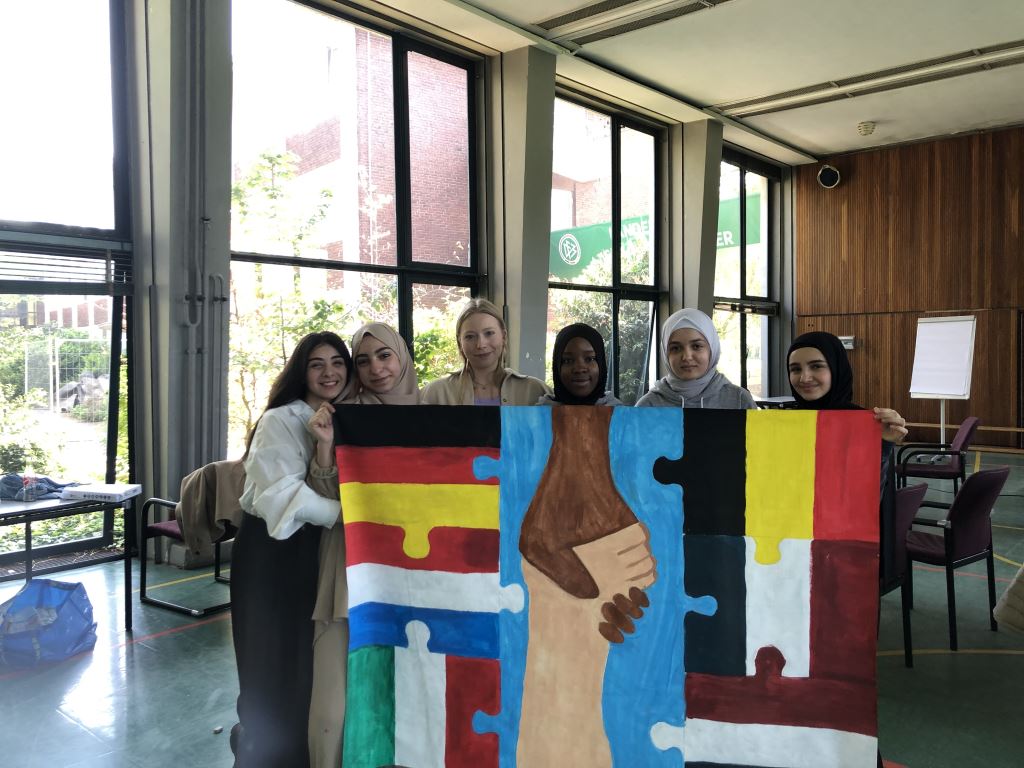 Am 02.05.24 haben die Schülerinnen des WP2 Kunst Kurses der Jahrgangsstufe 9 von und in Begleitung von Frau Grüter am Europatag der Duisburger Europaschulen teilgenommen. Der Europaaktionstag – veranstaltet von den Schulen und dem Europe Direct EU Bürgerservice – fand in der Sportschule Wedau statt. Dort konnten sich die 15 Schülerinnen unter der Themenstellung „Zukunft Europa. Wir gestalten unsere Zukunft“ in vier unterschiedlichen Workshops ausprobieren.