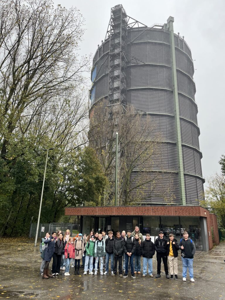 Wir alle waren gespannt, was uns erwarten würde. Schon Tage vorher gab es Absprachen und Diskussionen in der Klassengruppe. Unser Klassenlehrer Herr Klömmer und Frau Ehmen begleiteten uns. Schließlich kam unser Zug, dieser brachte uns nach Oberhausen Hauptbahnhof. Von dort aus fuhren wir einige Stationen mit dem Bus, bis wir unser erstes Ziel erreicht hatten. Ein imposantes Gebäude tauchte vor uns auf, es war der Gasometer. Ein riesiges Plakat verriet uns den Namen der momentanen Ausstellung: „Planet Ozean“.