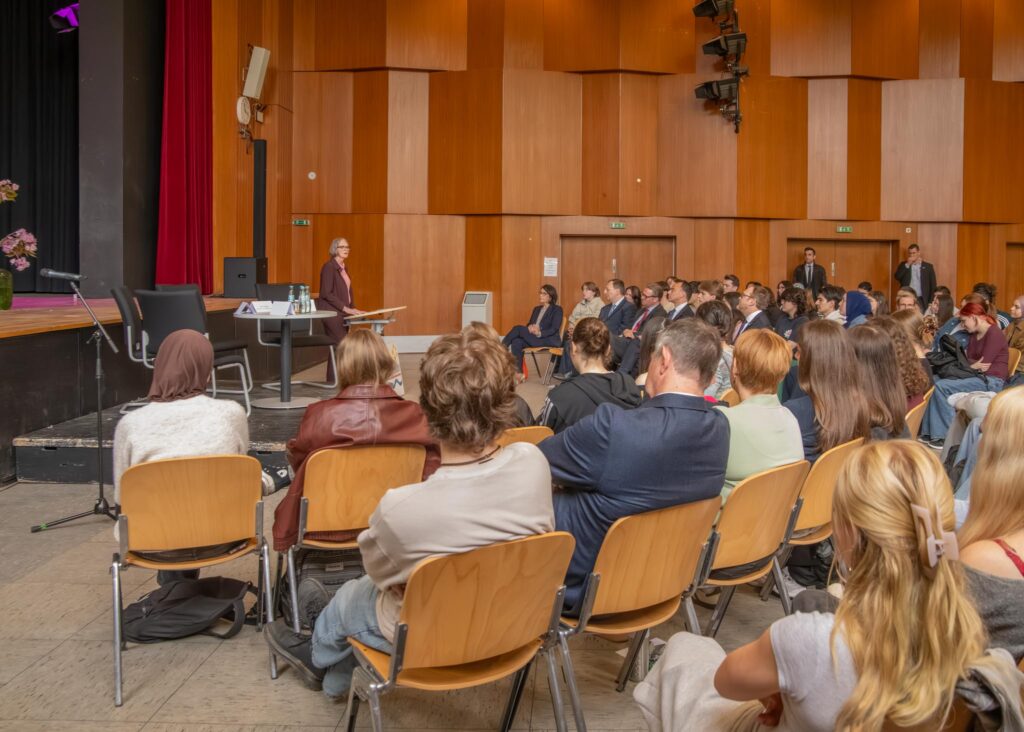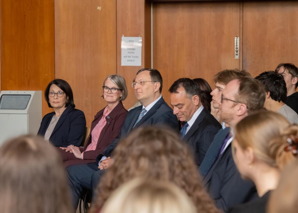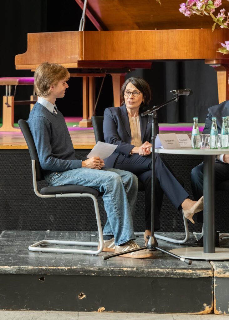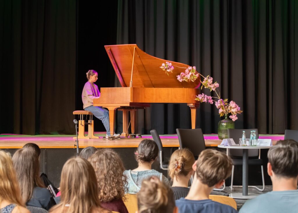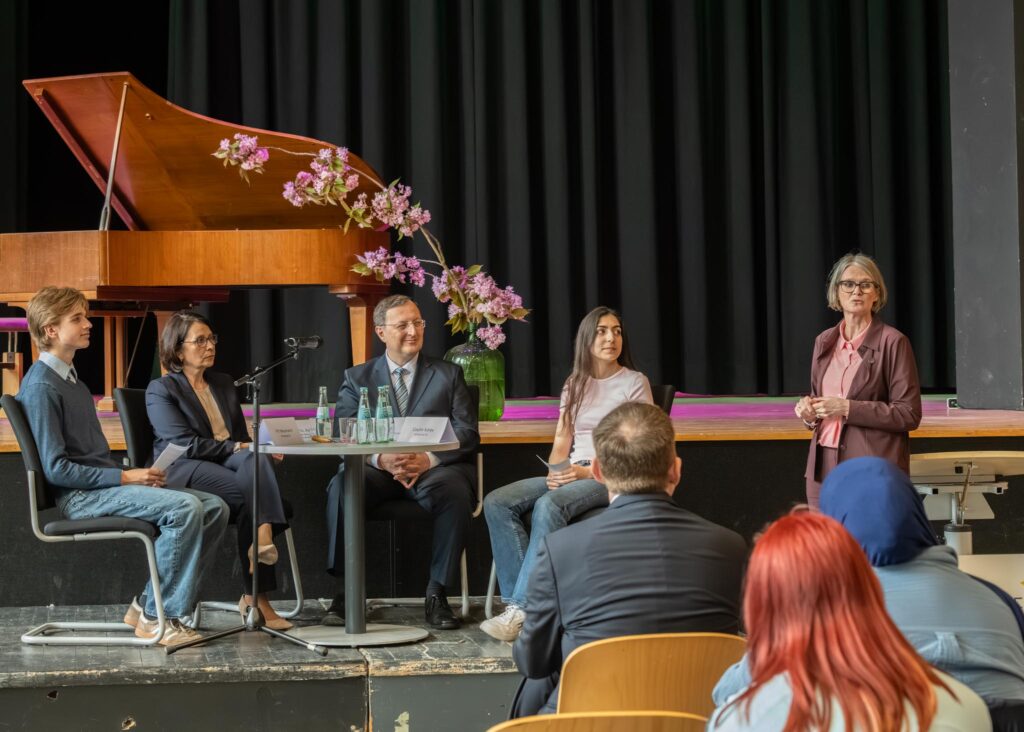Das Krupp-Gymnasium hat den türkischen Botschafter herzlich empfangen und einen festlichen Rahmen für diese außergewöhnliche Begegnung an unserer Schule geschaffen. Jolina Eichmann aus der EF bot am Flügel den musikalischen Rahmen, die Q1 hörte sehr aufmerksam der Diskussion zu wie auch alle geladenen Gäste und Lehrerinnen und Lehrer. Inhaltlich wurde die Diskussion durch den Q1 Sowi-Kurs von Herrn Thomas vorbereitet. Allen Beteiligten sei ein herzlicher Dank ausgesprochen, namentlich an dieser Stelle Herrn Jahn für die Organisation, Herrn de Byl für die Fotos, Herrn Tenner mit Elias Daniels für die Technik und Herrn Thomas für die inhaltliche Erarbeitung der Moderation.