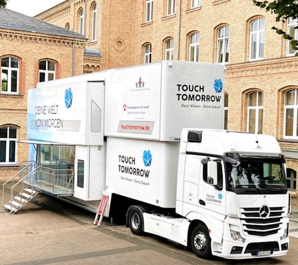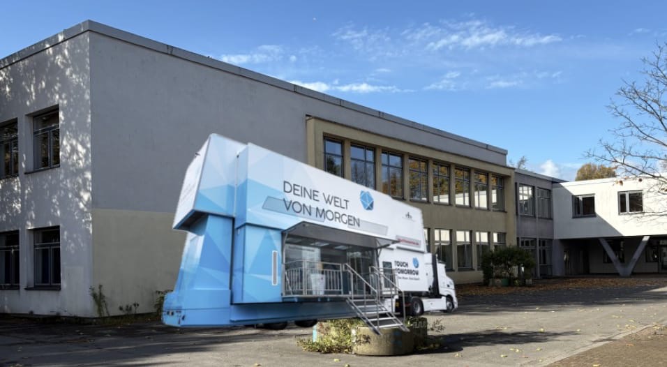 Mitte Januar erwartet unsere Schülerinnen und Schüler noch ein Highlight aus dem MINT-Bereich. Vom 15.01.2026 bis zum 21.01.2026 wird der TouchTomorrow-Truck der Dr. Hans Riegel-Stiftung auf dem Schulhof des Krupp-Gymnasiums Station machen. Schülerinnen und Schüler aller 9. und 10. Klassen, die Biologiekurse der EF und zwei zufällig ausgewählte achte Klassen werden in 90 spannenden Minuten MINT-Berufsfelder der Zukunft kennenlernen, mit neuesten Technologien arbeiten und hoffentlich begeistert sein.
