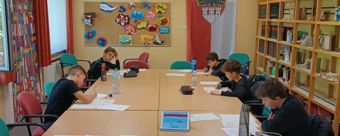 Toni und Yunus aus der 6b und Kerim, Jasper und Abdulrahman aus der 7b durften sich heute 60 Minuten lang mit sehr kniffligen Matheaufgaben auseinandersetzen. Sie hatten sich für die zweite Runde (Zwischenrunde) des Pangea-Wettbewerbs qualifiziert. Damit gehören sie bundesweit zu den besten 500 Teilnehmende ihrer Jahrgangsstufe. Eine tolle Leistung, wenn man bedenkt, dass etwa 75.000 Schülerinnen und Schüler die erste Runde dieses Wettbewerbs bestritten haben.