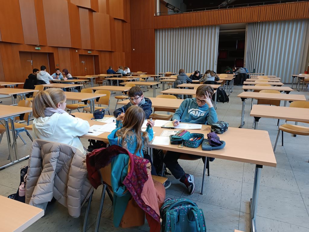 Das Krupp-Gymnasium ist seit 2017 dabei. Heute gingen neun Teams aus den Klassen 5b, 6b, 6c, 8b, 8c, 10b, 10c und ein Team aus der Jahrgangsstufe Q2 an den Start. 60 Minuten lang wurden Ideen und Lösungswege entwickelt, ausgetauscht und diskutiert. Die Köpfe rauchten und längst nicht jede Aufgabe konnte bewältigt werden. „Echt schwer!“, war die einhellige Schülermeinung. „Aber trotzdem interessant!“, „Hat Spaß gemacht!“