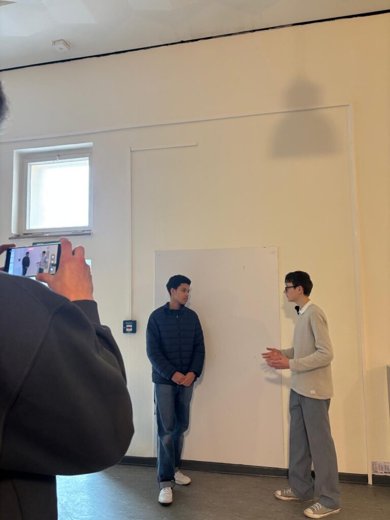 Für Lara Osterkamp und Iclal Simsek begann der Tag jedoch schon um 6:00 Uhr mit gemeinsamem Pfannkuchenbacken für das Projekt. Anschließend trafen sich beide Jahrgänge um 8:00 Uhr zum Schulbeginn in der Aula, um ihre Beiträge für den Wettbewerb fertigzustellen.