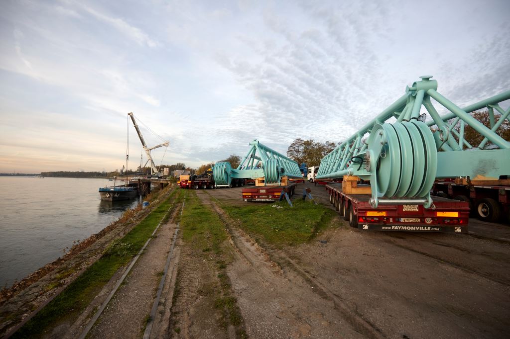 Auf den Bildern sieht man eine Verladung von Kranteilen aus dem Jahr 2022.
